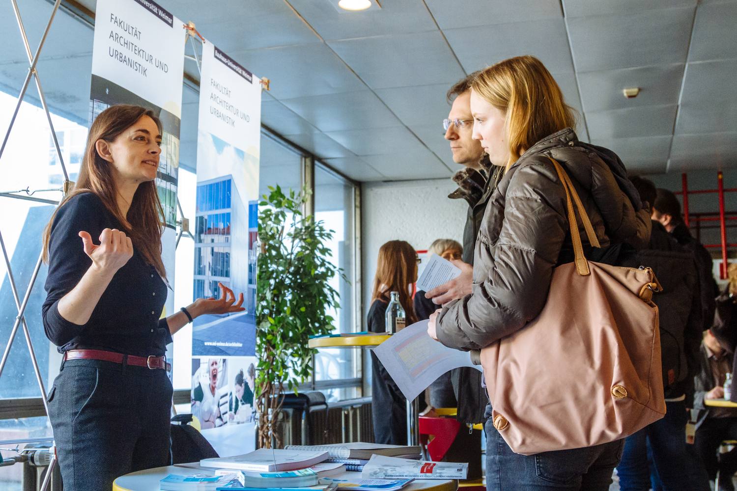 In der Mensa am Park als zentraler Anlaufstelle der Veranstaltung bieten Studierende und Professoren der vier Fakultäten Architektur und Urbanistik, Gestaltung, Medien und Bauingenieurwesen direkte Einblicke in den Studienalltag, erzählen von Projekten und geben nützliche Hinweise zu Berufsperspektiven. Auch die Allgemeine Studienberatung und Fachstudienberatung geben in individuellen Fällen gerne Ratschläge zu den Studienprogrammen an der Bauhaus-Universität Weimar.